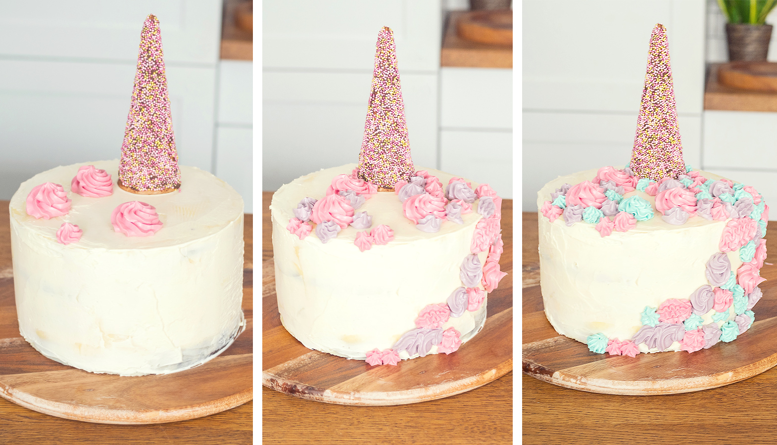 Pomocí krému vytvoříte zdobení, které bude připomínat hřívu. Neobejdete se ale ještě bez několika detailů, které jsou pro jednorožce nezbytné.