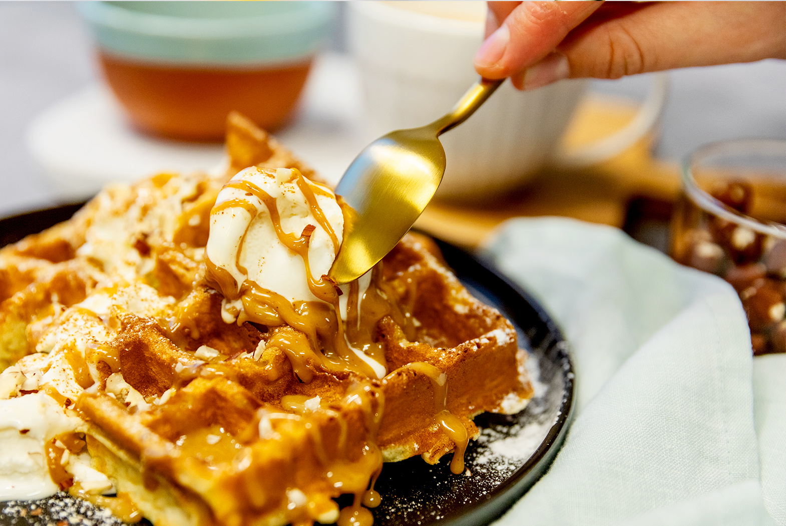 Poprvé jsem si své kávové dulce de leche vychutnala na nadýchané vafli s vanilkovou zmrzlinou, šlehačkou a s praženými lískovými ořechy. Až návykově to spolu ladilo. Nejvíc mě na této pochoutce ale baví, že nabízí nespočet dalších možností. Třeba dulce de leche v bílém jogurtu nebo ovesné kaši nebo… To už nechám na vás. :-)