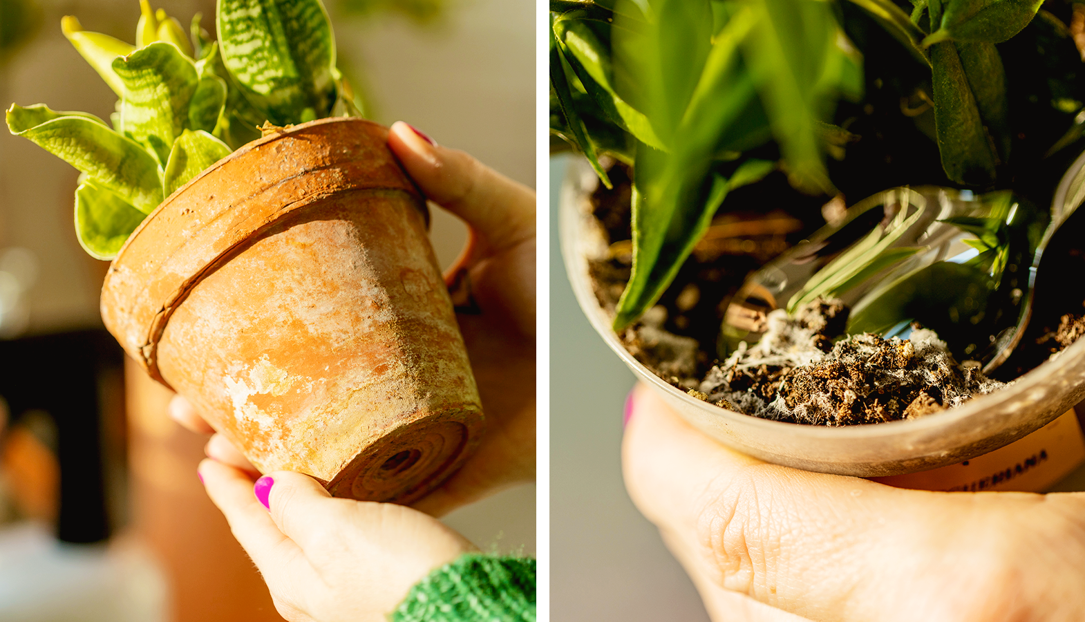 Nejrazantnější, ale zároveň z mojí zkušenosti to nejlepší řešení je úplně přesadit rostliny a co nejdůkladněji očistit zbytky původní zeminy. Ačkoliv se běžně nedoporučuje rostliny s nástupem podzimu přesazovat, zakázané to vyloženě není a většina pokojovek takový zákrok zvládne. Navíc můžete včas zjistit, jestli už není přelití v pokročilejší fázi a kořeny nedostávají na frak.