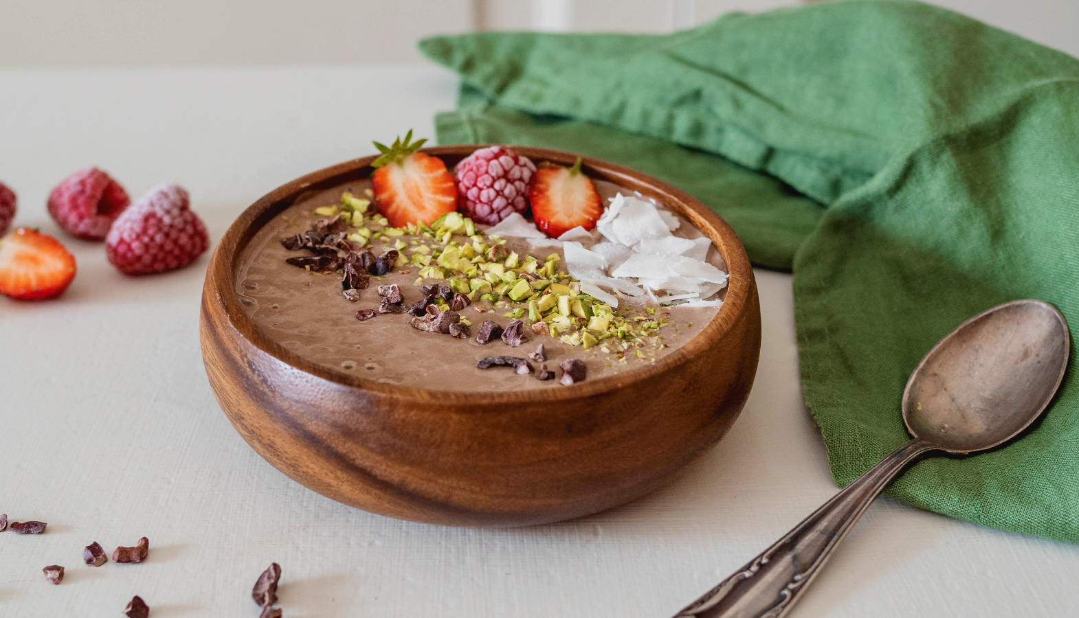 - Na ozdobu: čerstvé ovoce (například maliny nebo jahody), nasekané oříšky, kokosové lupínky, drcené nepražené kakaové boby