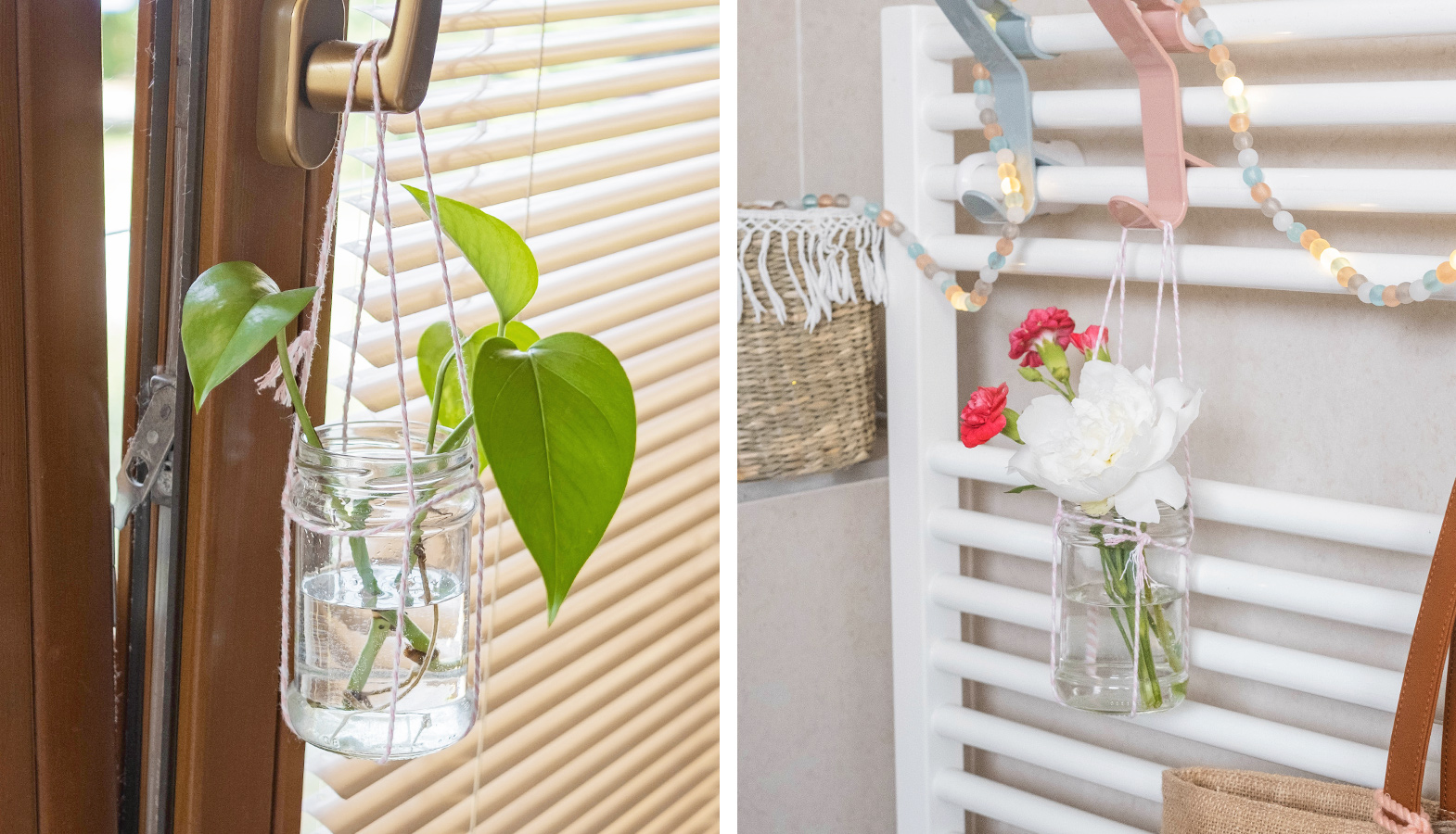 Na jeden úchytný bod můžete pověsit i více váziček. Stačí každé z nich udělat jinak dlouhý provázek. A pokud máte doma volnou zeď, můžete zatlouct pár hřebíčků a místo obrazů zavěsit sadu těchto dekorací.
