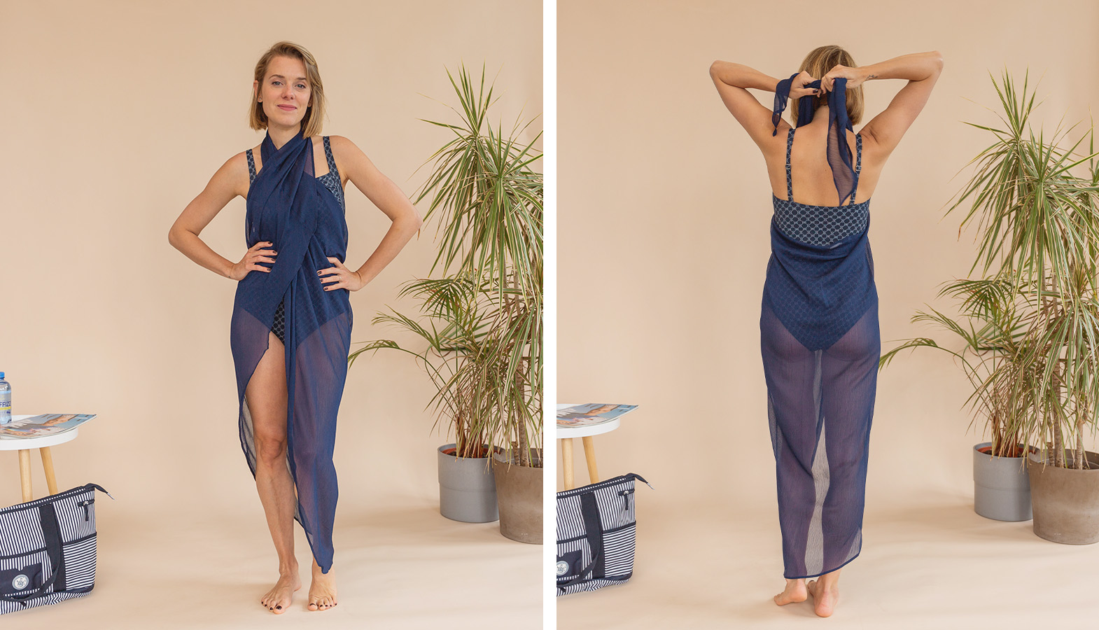 - Plavky můžeme doplnit o nějaký ten stylový kousek, který zakryje přesně to, co chcete, aby bylo zakryté. A nemám na mysli pončo v délce po kotníky nebo domácí župany.