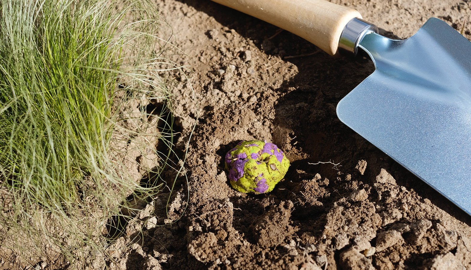 - Pokládání: Můžete je uložit na vámi vybrané místo a jen zlehka přihrnout zeminou. Kuličku je dobré rozdrtit pomocí prstů a tím pomoci semínkům ven.