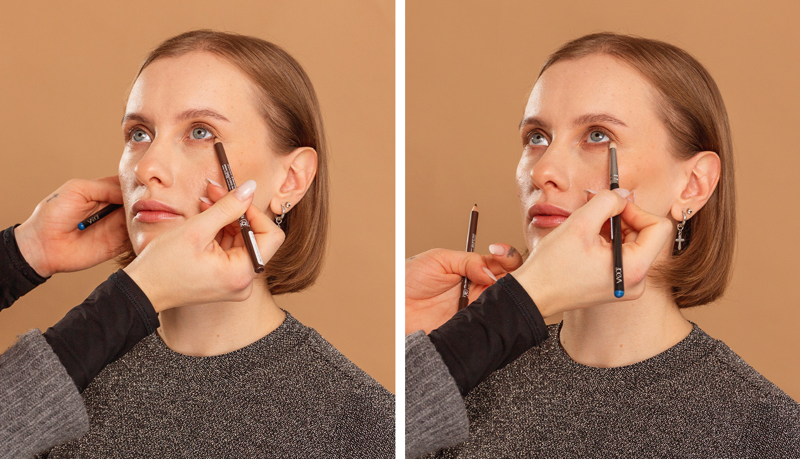 Tmavě hnědou nebo černou tužkou zvýrazním linii řas a lehce rozetřu. Pohled je díky tomu výraznější, ale stále jemný. Pokud chci intenzivnější pohled, nanesu tužku i na vnitřní linku.