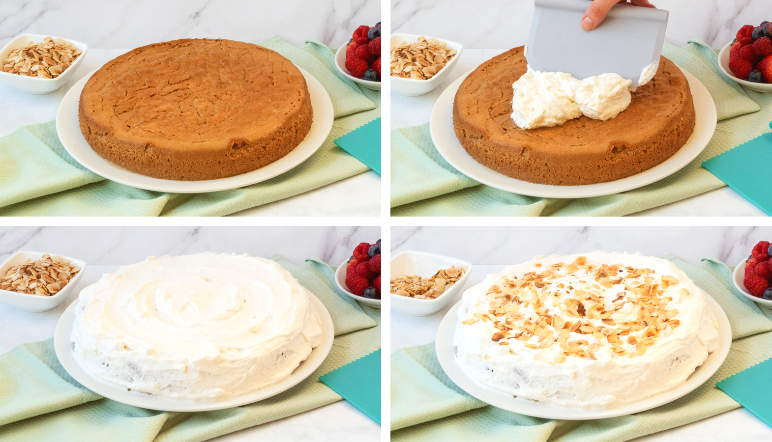 Recept se skládá ze tří částí. Nejprve upečete korpus, ten pak zalijete mléčnou směsí a na závěr ho ozdobíte šlehačkovým krémem a mandlemi.