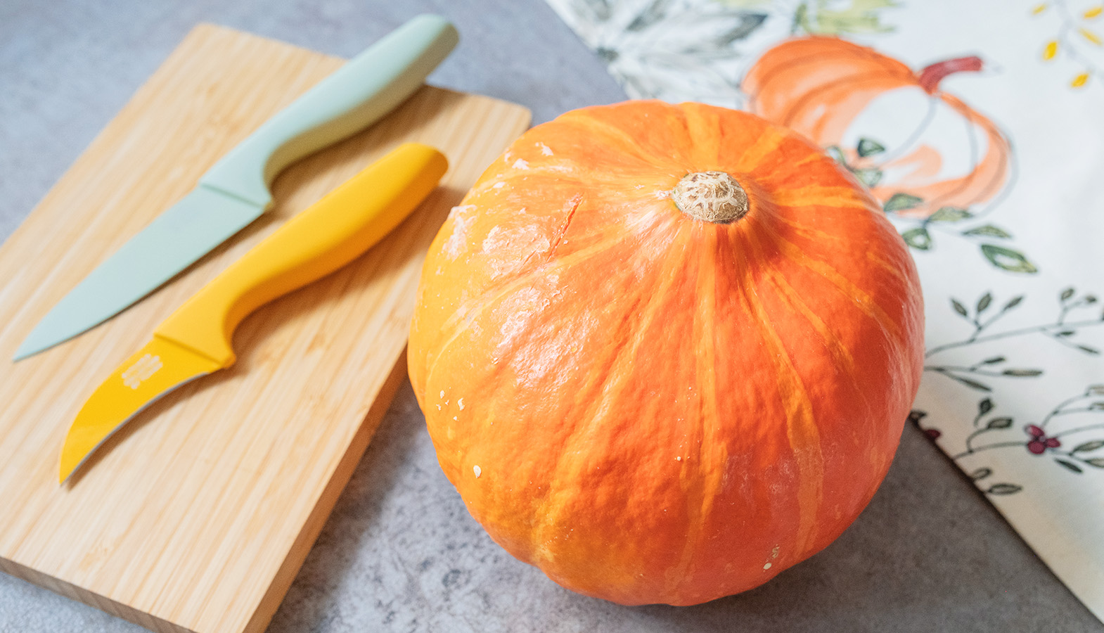 - Dýně: Vyberte si pevnou, středně velkou dýni. Nejlépe se hodí odrůdy s tvrdší slupkou, jako je hokaido nebo máslová dýně, které budou dobře držet tvar.